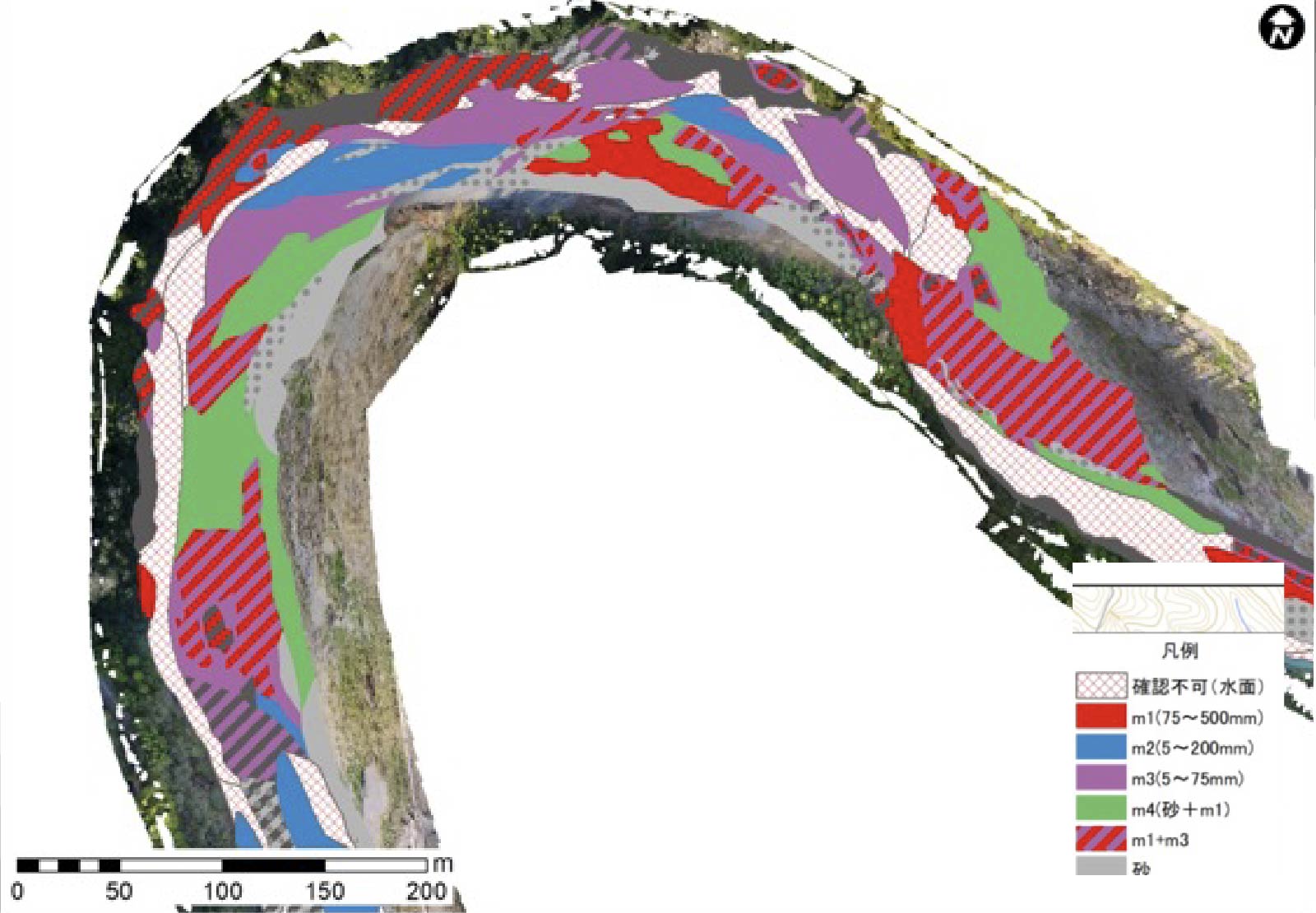 ・川の状態を適切に評価するためには、石や礫、砂などの「河床材料」がどのように分布しているかを詳しく調べることが重要です。これらの材料の分布は、川の流れや生物の生息場などに影響を与えるため、治水面や環境面の基礎となる情報です。