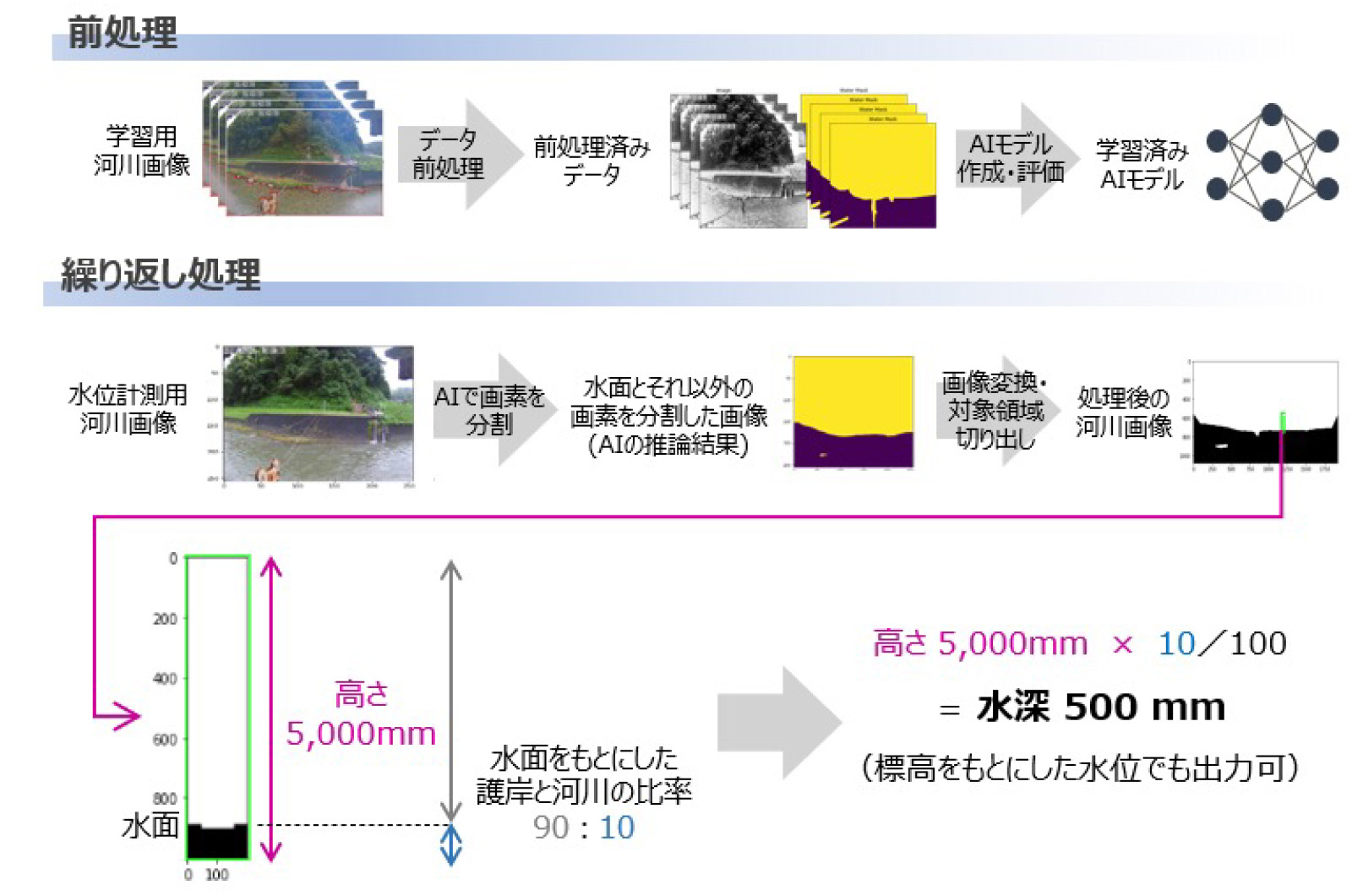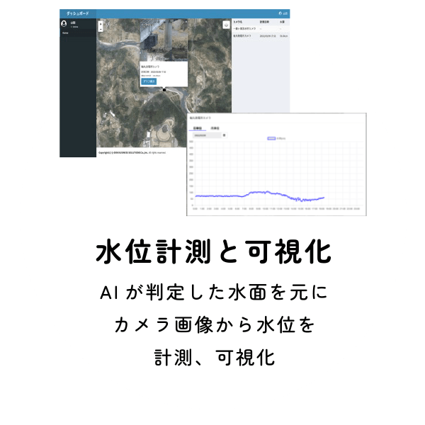 AI水位計測は監視カメラの設置および簡単な設定だけで水位計測を実現します。