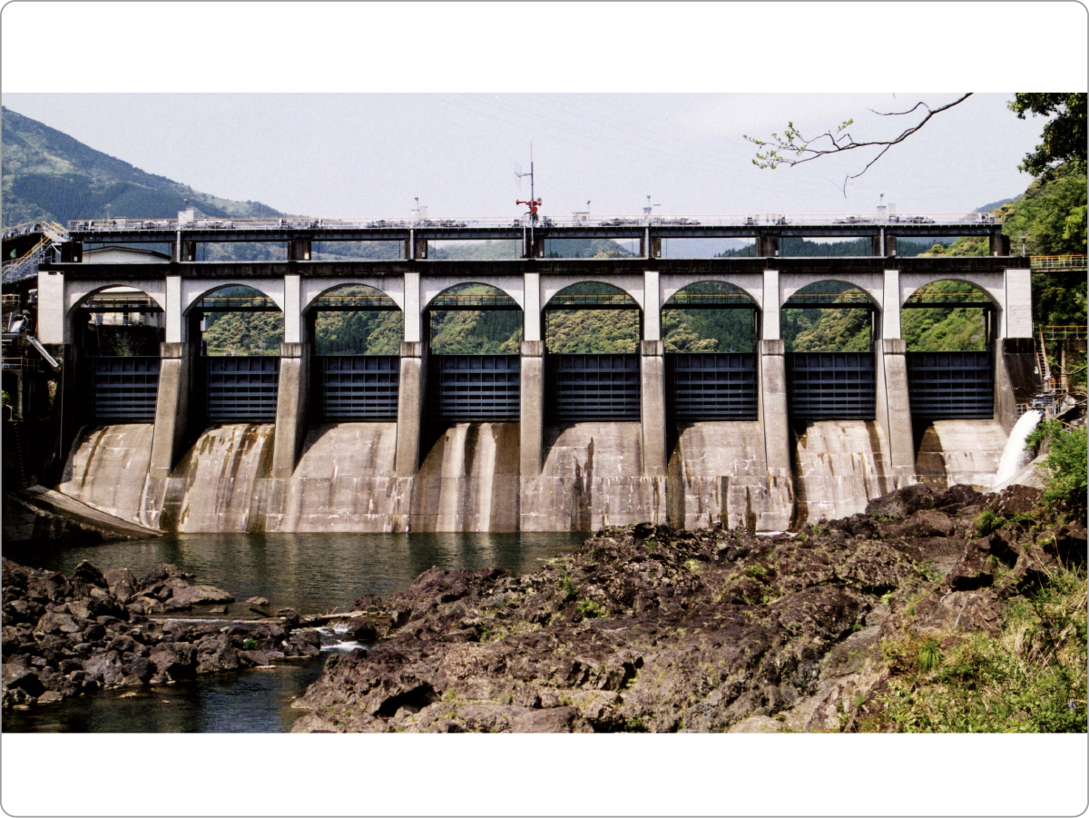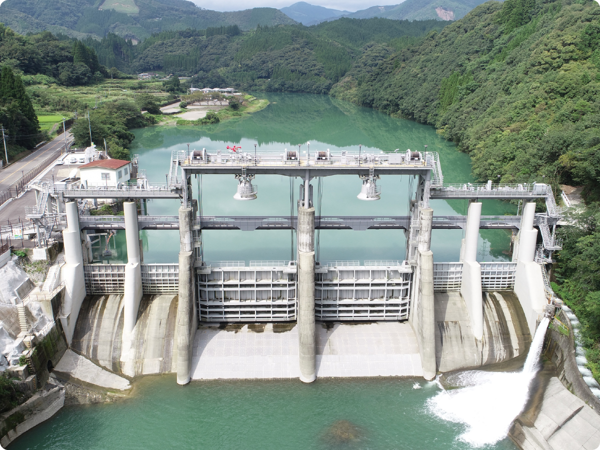 ダムが持つ機能の維持と向上を目指し、新設ダムに加え、ダム再生や堰堤改良事業の既往実績や経験から、ダムの健全性を調査・解析・評価し、各設備(電気・通信・制御、機械、観測等)の更新計画・設計を提案します。