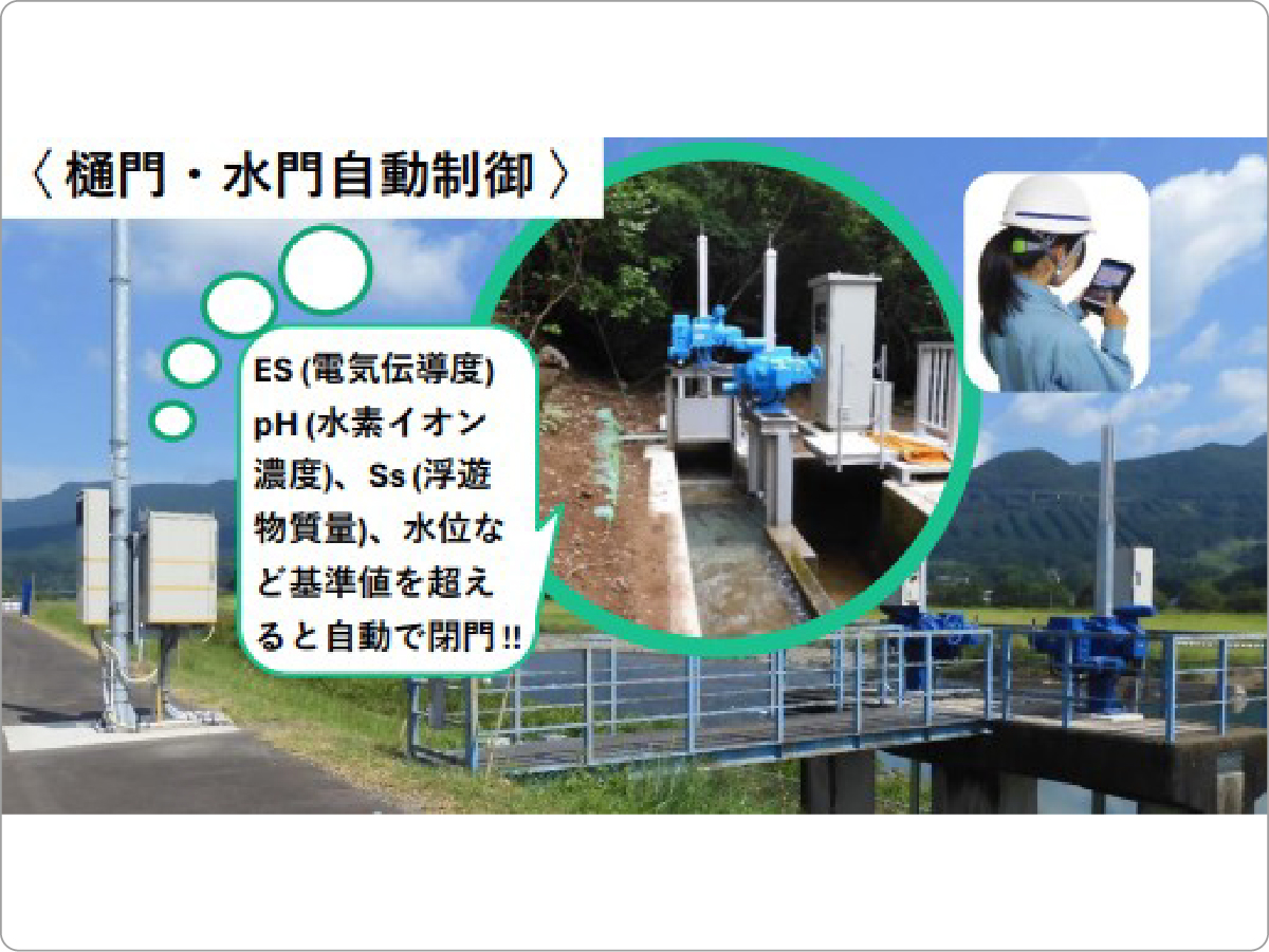 ポンプやゲート操作の省力化を図り、遠隔操作・電動化・無動力化等を提案します。